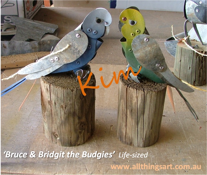 Above: 'Bruce & Bridgit the Budgies' life-sized corrugated iron
