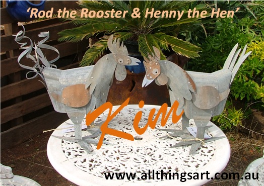 sculptures I ever made, thus starting my market adventures. Both chooks priced at $95 eachFor further information contact Kim: phone/text 0428476826 or email kim.gibbs007@bigpond.com