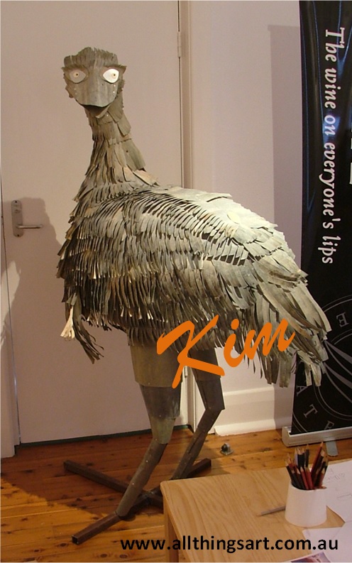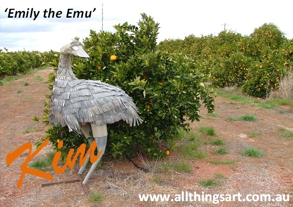 Above 2x photos: 'Emily the Emu' life-sized corrugated iron