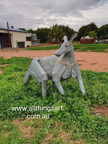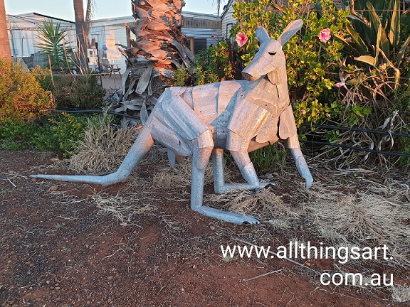Above 2x photos: 'Kevin the Kangaroo' life-sized corrugated iron