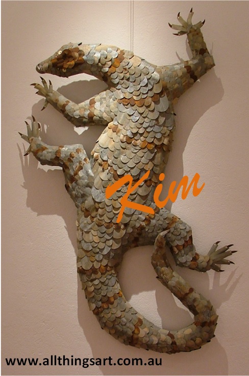Above: 'Gomez the Goanna' wallhanging corrugated iron sculpture.