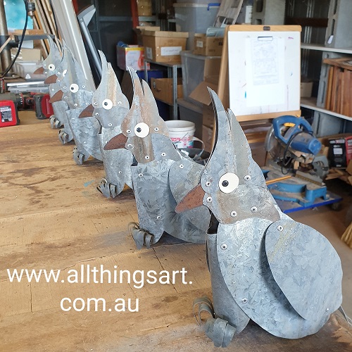 Above: 'Tamara the Topknott' life-sized corrugated iron sculptures. $85 each