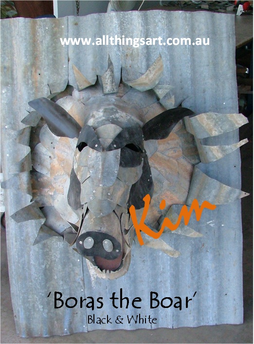 Above: 'Boras the Boar' wallhanging corrugated iron sculpture. I