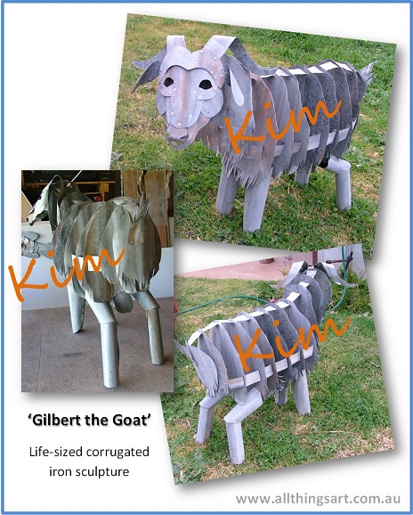 Above: 'Gilbert the Goat' life-sized corrugated iron sculpture,